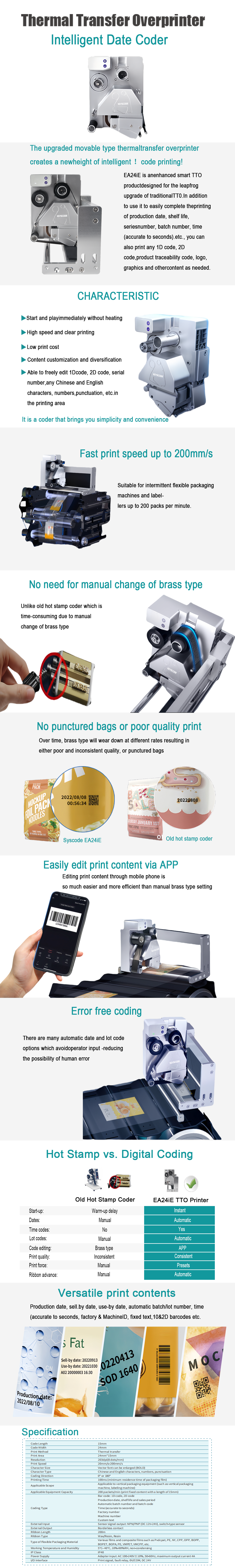 TTO Thermal Transfer Ribbon Coder Printer - For Packaging Machines