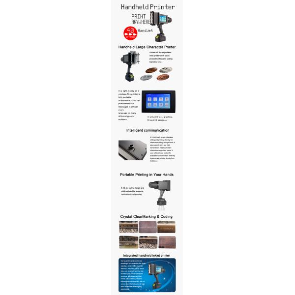 | Successful Applications Across Industries | This portable handheld inkjet printer has been successfully applied in various industries, including logistics and transportation, construction materials, wire and cable, metallurgy and steel, cement, petroleum, elevators, and food. |